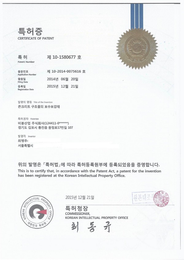 15 | 난연에폭시 특허증 제 10-1980355호 | 비봉관리자 | 2019.05.21 | 1549 |