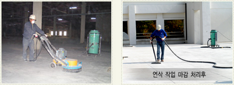 방수공사 작업과정 진공청소기 사용중 연삭기