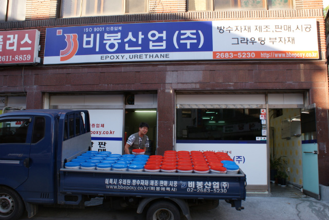 방수자재 그라우팅 보수자재인 건식 씰링제를 생산해서 서울 사무실에 입고 하기전 모습입니다.