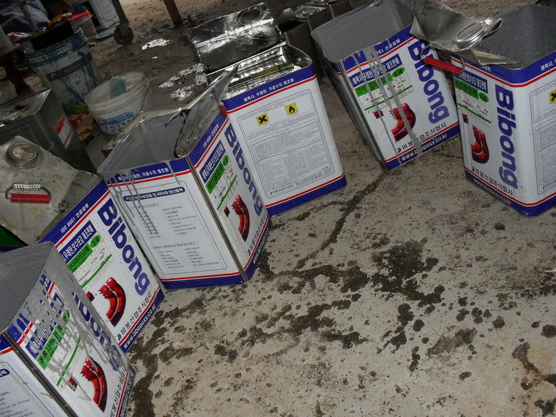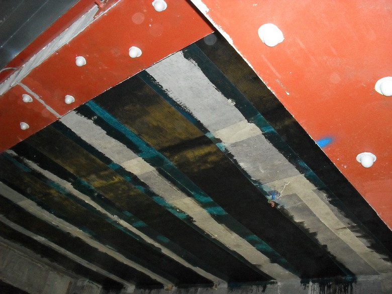 BE-300중점도 주입제로 충진했고 탄소섬유SK-300 쉬트로 보강공사를 하는 모습이다