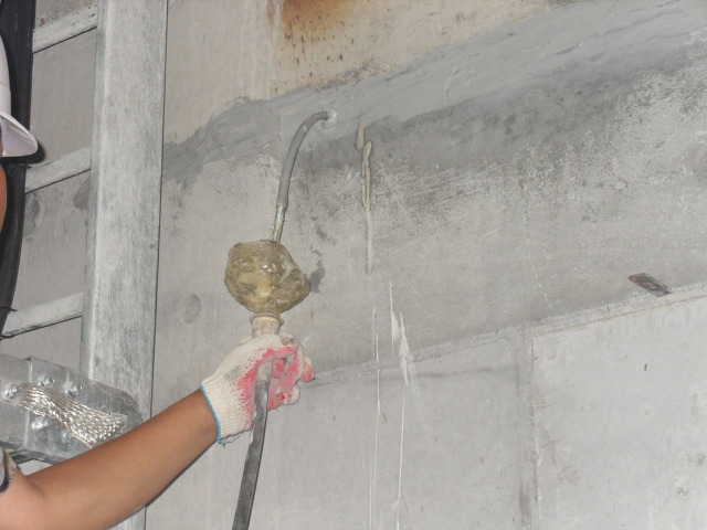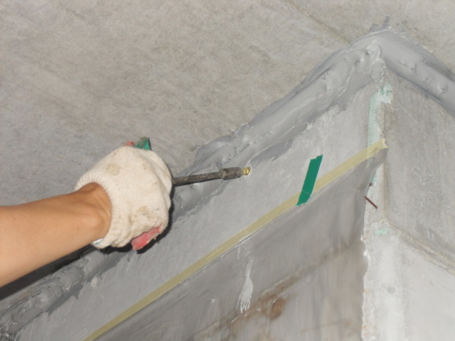 약액이 다 굳은후 패카를 절단하고 마감한다 .
