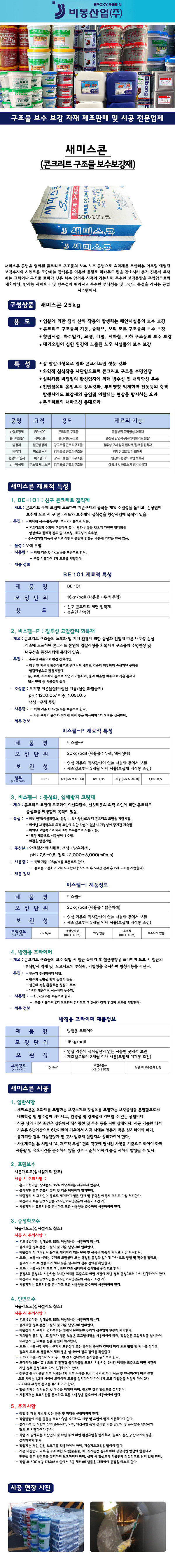 | 21 | 보수몰탈 새미스콘 비스펠 -I ,비스펠 -P 제품 사양서 | 비봉관리자 | 2022.10.21 | 1169 | |||
