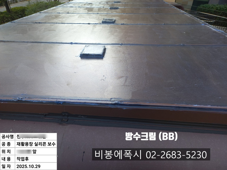 | » | BB방수크림 시공사진입니다 (크림타입 다용도 씰링제 ) 작은통입니다 | 비봉관리자 | 2025.10.31 | 290 | |||