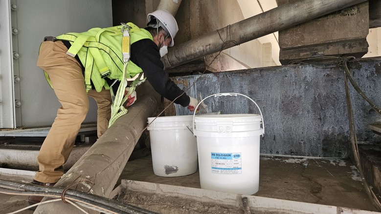 #무기질탄성방수재 #차열방수재 #탄성방수 #도막방수 #샘플시공 #교량 #고가 #시멘트탈락부위시공 #보수공사 #방수공사