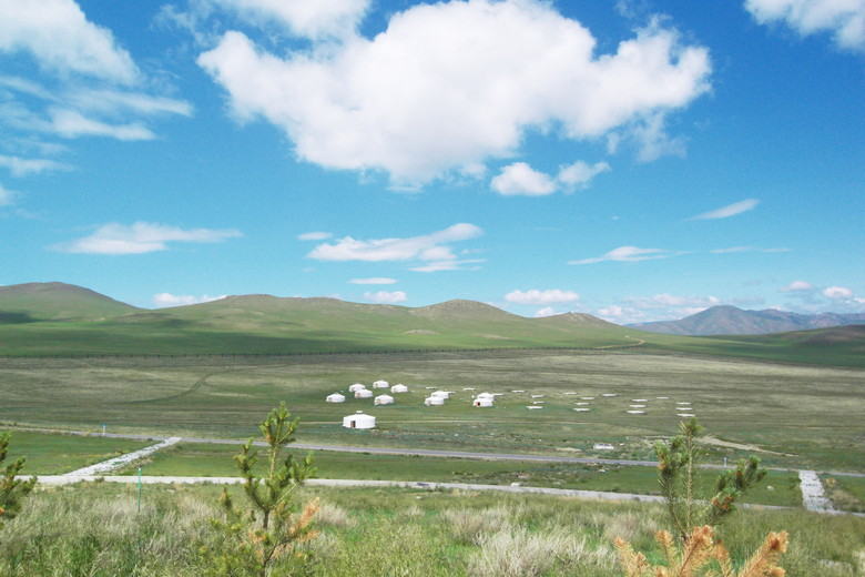 몽골사람들이 살고 있는 게르의 모습과 초원 그리고 징기스칸의 동상 등