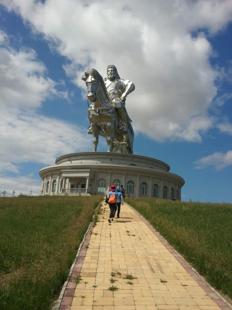 몽골사람들이 살고 있는 게르의 모습과 초원 그리고 징기스칸의 동상 등